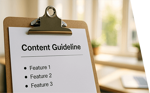We’ll review, annotate, and update your content guideline, which becomes the initial design scope. We’ll assign a number of hours to build it, and discuss any changes needed.