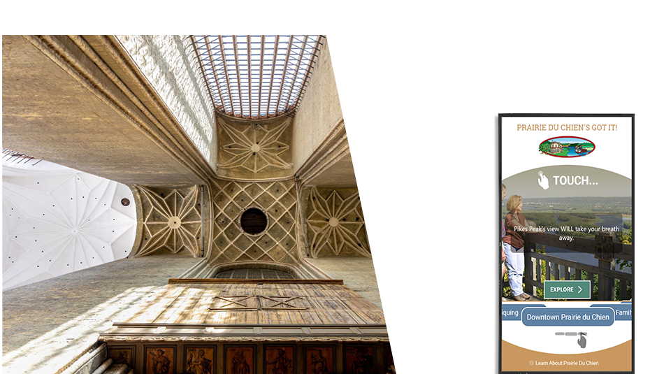 An interactive display works like a 24/7 interactive tour guide for your visitors. Educate about local points of interest, promote businesses, share history with parallax timelines and digital storytelling.