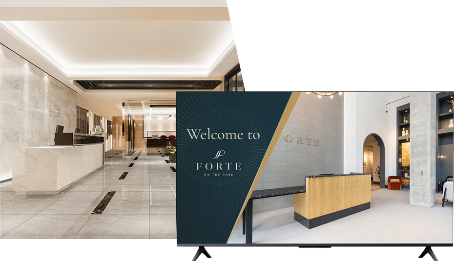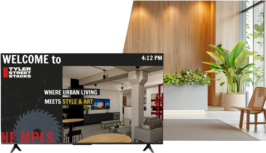 Mix tenant directory info with local area information. Enhance conference rooms with looping signage, then connect your anchor cafe with digital menu boards. Finally, communicate internally with break room displays and facilities dashboards to keep up on maintenance in real-time.