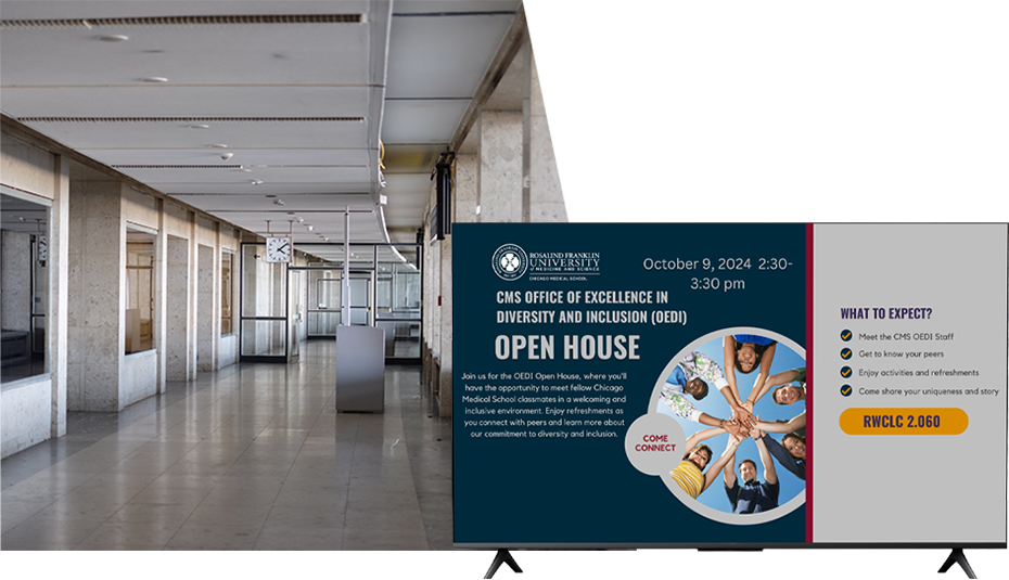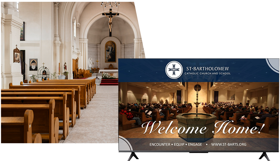 A house of worship nowadays is a multi-faceted community space. Share service times, event schedules, and announcements in a clear and welcoming way. Ideal for keeping members informed as they move through entryways, halls, and gathering spaces.
