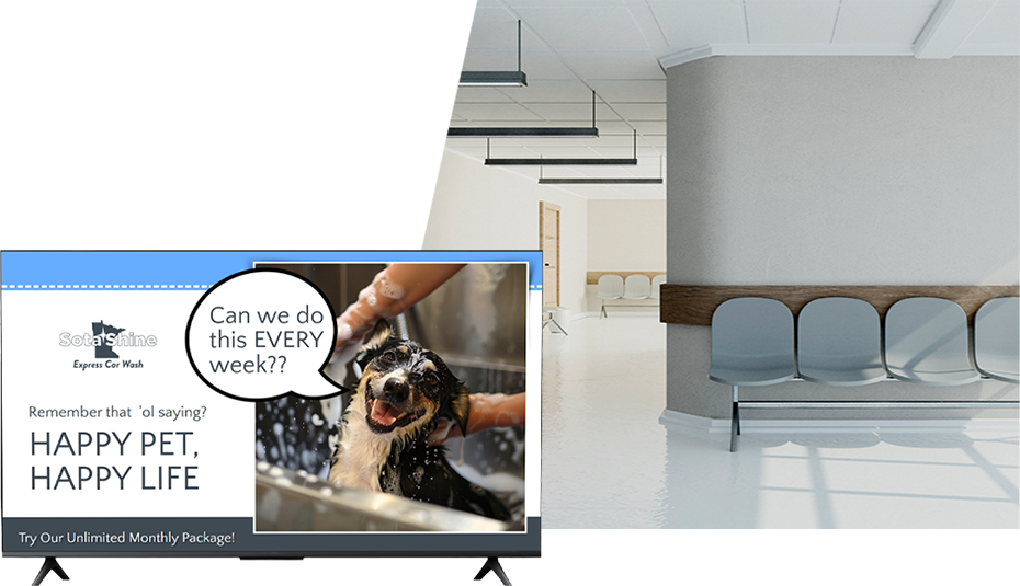 Whether you’re a veterinary practice, primary care, vision correction, plastic surgery and more, we’ll help your visitors feel welcome, at ease, and educated on your services. Display wellness tips, insurance info, common questions, testimonials, appointment/newsletter QR’s, videos, and more.